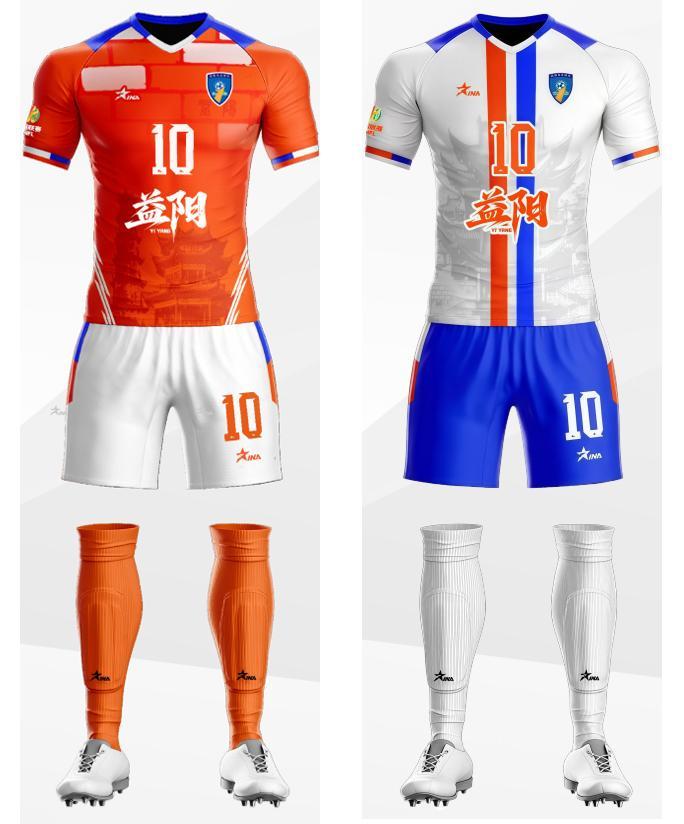 益阳队队服将益阳古城墙的文化基因与足球运动的活力感深度融合,既还原城墙的纵深感,又符合运动需求。