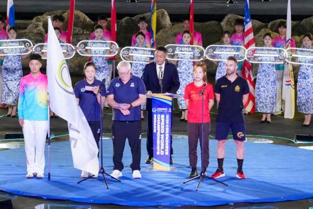 2025年世界速度轮滑锦标赛开幕式上,运动员、裁判员代表宣誓。长城网·冀云客户端记者 武佩剑 摄