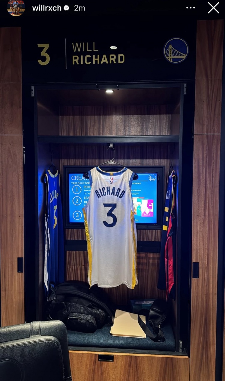 7月1日讯 今日,勇士56号秀威尔-理查德在个人Ins上晒出了自己的更衣柜。